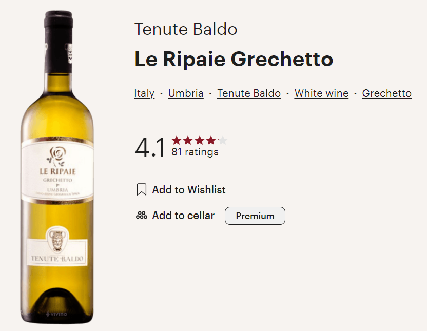 יין לבן יבש בעל טעמים של פירות הדר עם רמזים של אפרסק ותפוח. ניתן להגדיר את היין כעגול אך עם התפתחות, מלוח מעט, נושם ונקי. מדורג בויוינו 4.1. 12.5% אלכוהול.