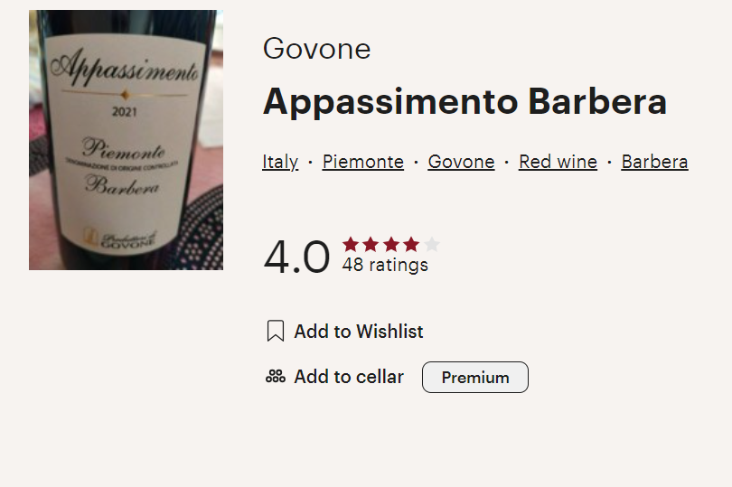 יין אדום יבש מענבי הברברה המפורסמים של פימונטה. את העבים השאירו לייבוש מבוקר של שלושה חודשים (ומכאן האפסימנטו) לפני התסיסה בכדי לקבל טעם מרוכז ועשיר יותר. היין נועד לצריכה מהירה ומדגיש את טעמי הפירות האדומים כמו פטל ודומדמניות. 15.5% אלכוהול. מדורג 4 בויוינו.