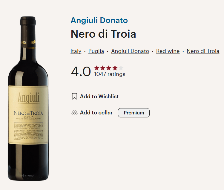 יין אדום בעל ניחוחות מתובלים של דובדבן שחור, גרגרי יער ועשן קל. מציג גוף בינוני מלא עם חמיצות רעננה וסיומת אלגנטית. נרו די טרויה טיפוסי שמדגיש את העומק והאצילות של פוליה. יין מאוזן ומורכב המשקף את המסורת העתיקה של האזור ואת אומנות היין הדרומית במיטבה. מדורג 4 בויוינו