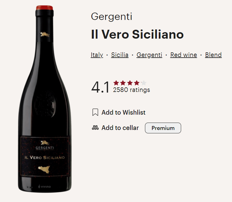 בלנד יין אדום יבש המכיל נרו ד'אבולה, נרלו מסקלזה, פראפאטו המגיע מסיציליה. הענבים המשמשים לייצור יין זה גדלים בגבעות הרריות על האי ונקטפים מאוחר בכדי לאפשר ייבוש טבעי על הגפנים. שימוש בשלושת זני הענבים ביין זה מאפשר הגעה לטעם האידיאלי של סיציליה ולתת חוויה של גוף מלא ופירותי. מדורג 4.1 בויוינו. 15% אלכוהול.