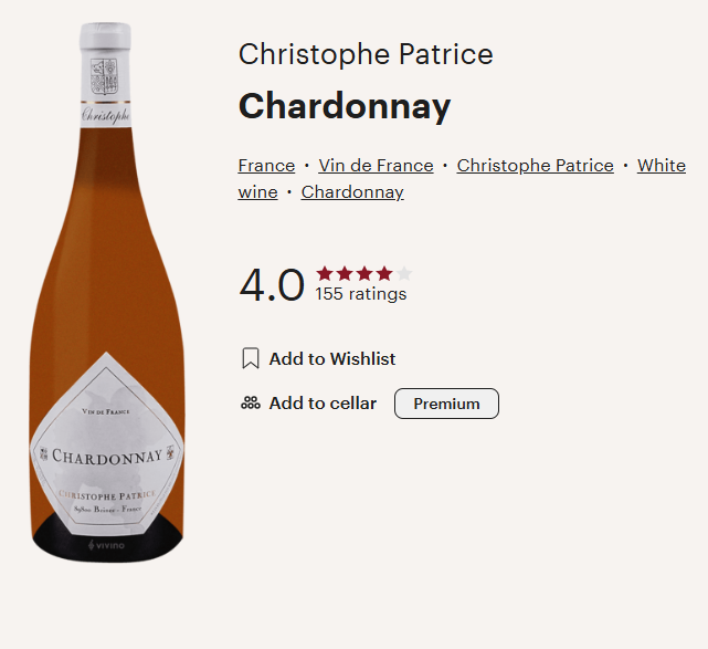 שרדונה צרפתי יבש בעל גוף בינוני וחומציות בינונית, המדורג גם הוא בציון 4.0 בויוינו.